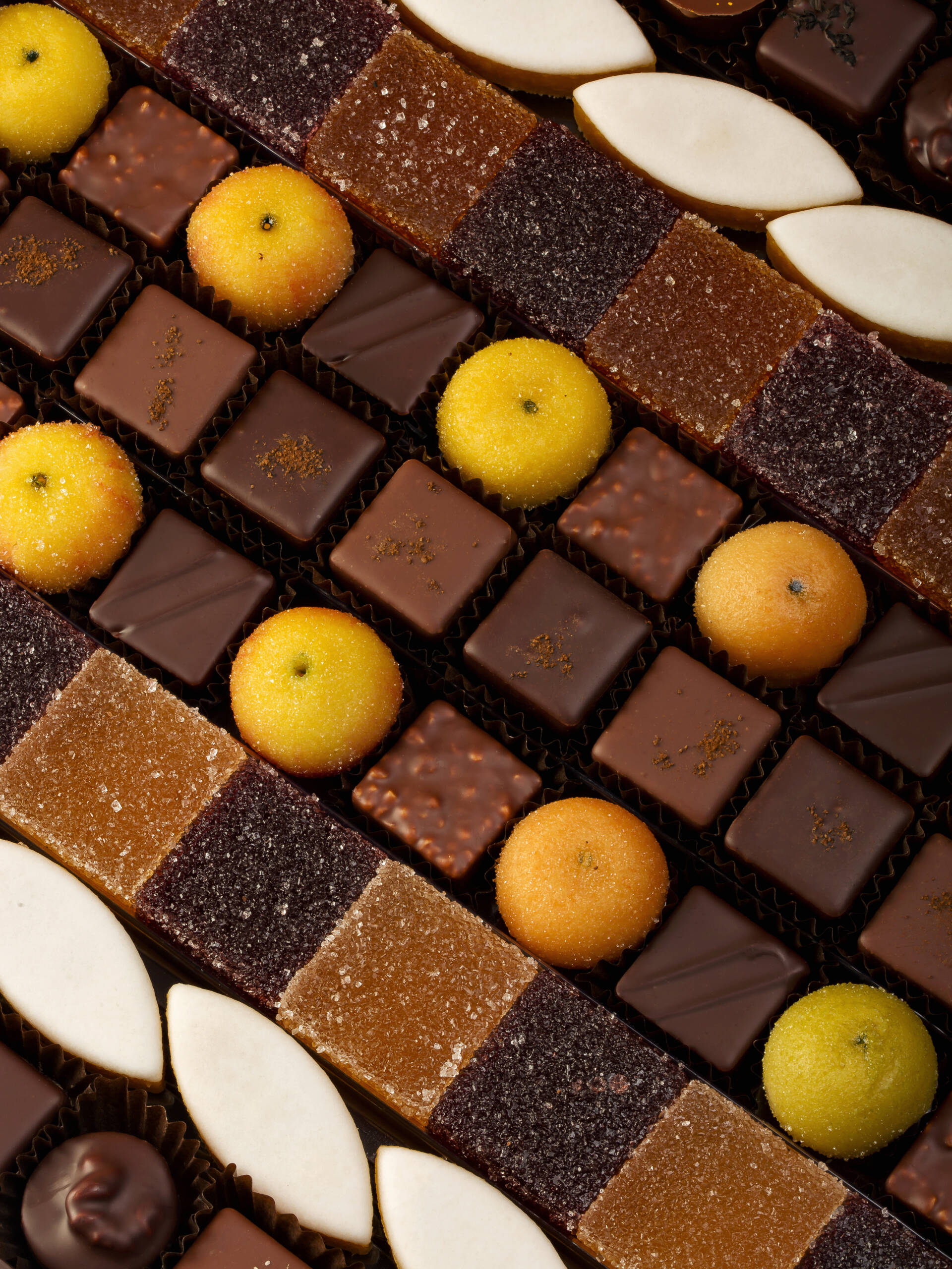 À l’image du magasin, ce coffret présente un assortiment de nos spécialités de chocolat et confiserie : bonbons de chocolat assortis ganaches et pralinés, pâtes de fruits, pâtes d’amande et calissons de Provence.