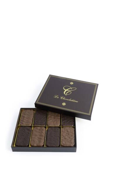 Ce coffret est composé de 16 craques (8 chocolat au lait 36 % et 8 chocolat noir 65 %)
